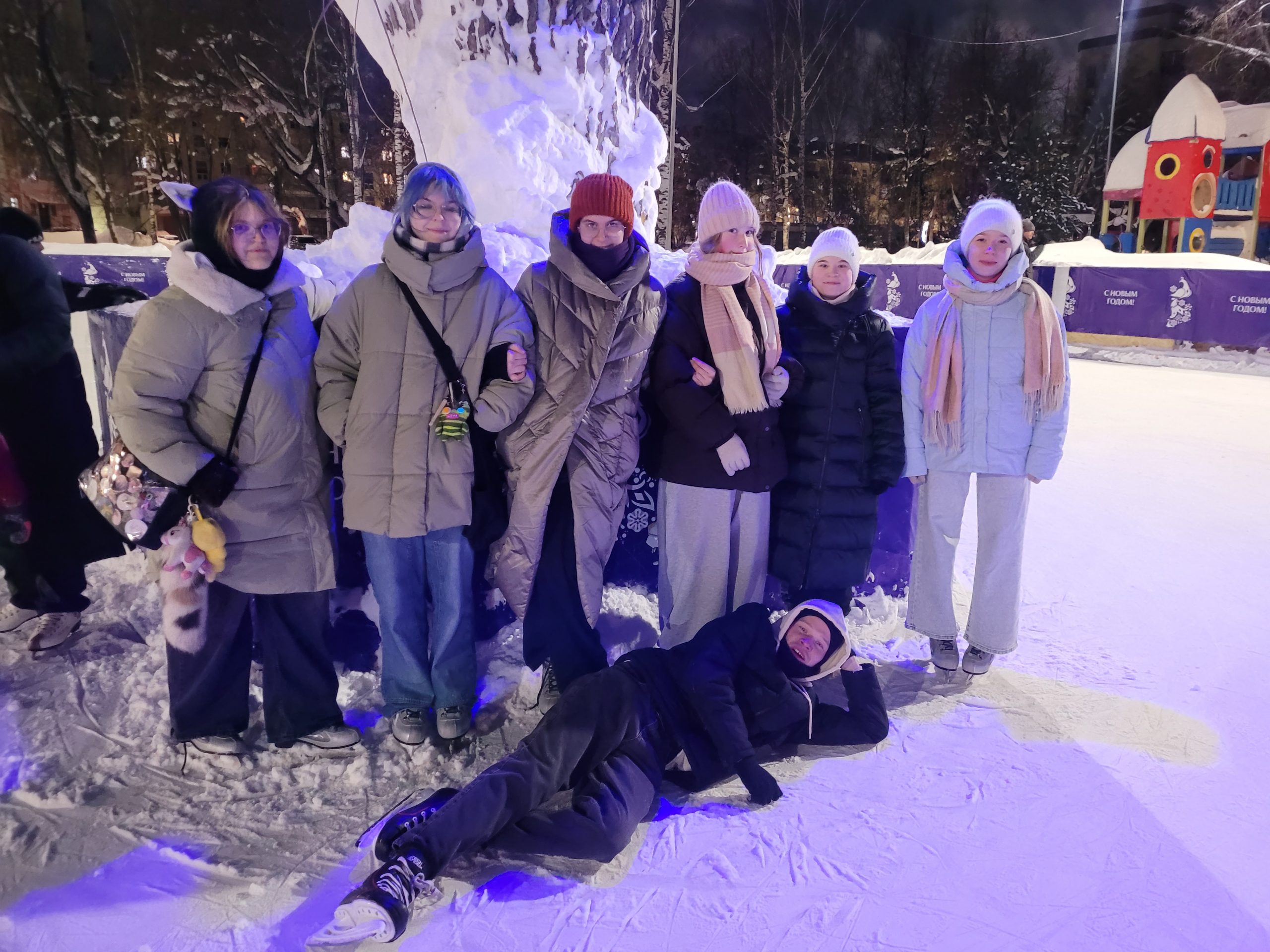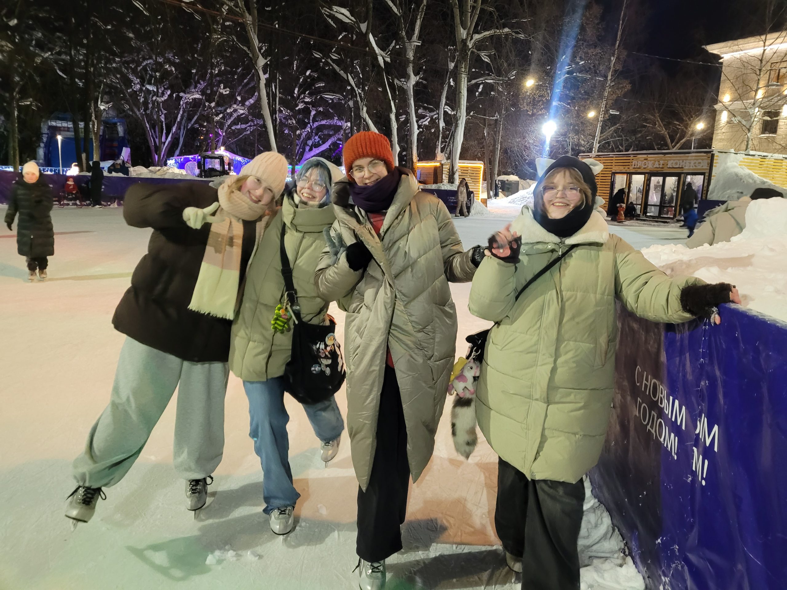 Весёлой компанией из восьми любителей зимних забав мы снова отправились в парк им. Гагарина. И пусть к вечеру морозец уже пощипывал щёки, на катке нам было жарко.