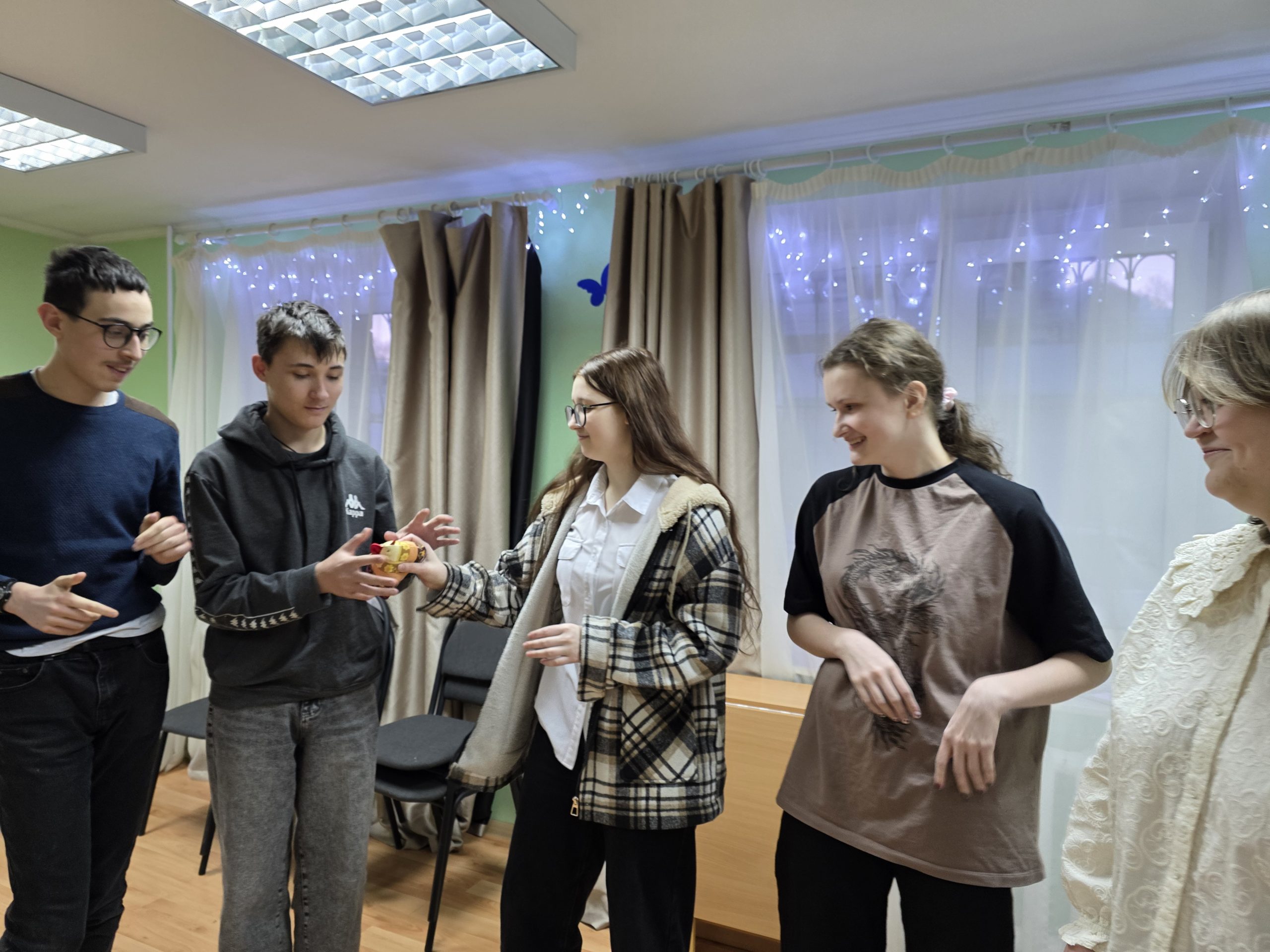 После сытного застолья хочется подвигаться — стали играть в народные масленичные забавы: ручеёк, золотой блин, снежки, золотые ворота и традиционные хороводы. Набегались, насмеялись — и калории сожгли, и настроение подняли.